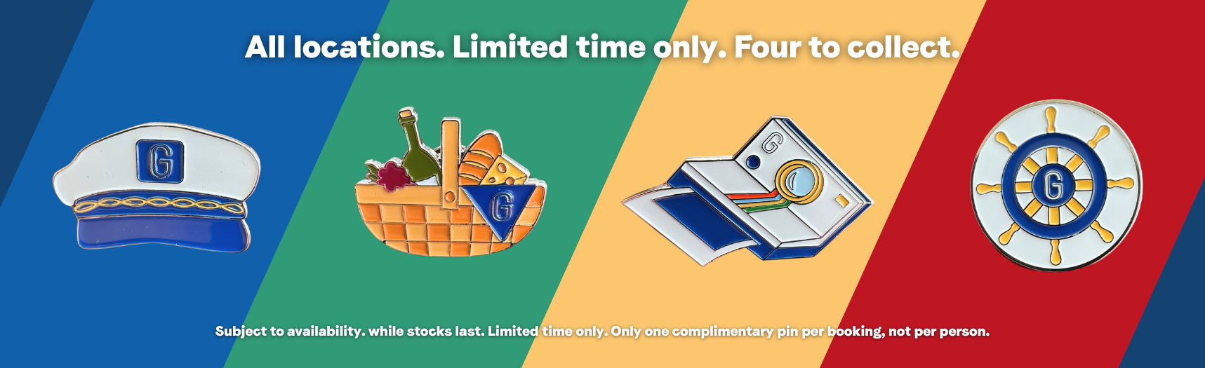 Limited, collectible, and only available this month while stocks last, these pins turn your day on the water into a fun, unforgettable moment that you can cherish long after you leave. Can you collect all four? Will you get your favourite? The only way to find out is to book your GoBoat adventure today and join the excitement!